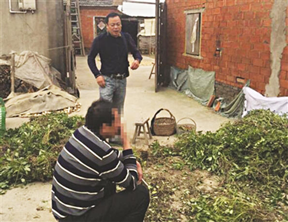 民警走访受骗当事人(蹲坐者)。 警方供图
